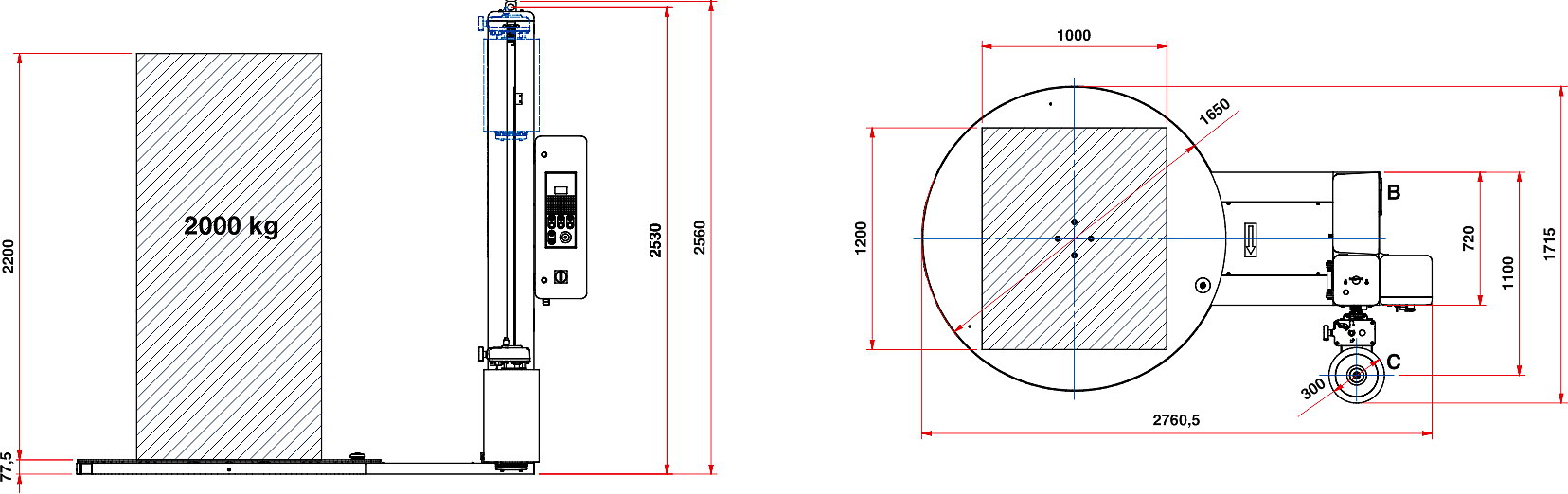 专为恶劣环境设计的高强度防滑转盘,由德国通快激光切割机制作而成,标准尺寸为1650mm,可扩大至1800mm。缠绕机转盘采用变频电机控制,即使在托盘货物不稳定的情况下也能确保安静、安全地操作。